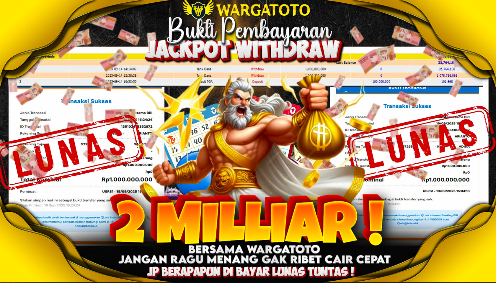 Masih ragu dengan wargatoto bos ? Di mana bandar togel online sekarang yang terpercaya seperti WARGATOTO? Bandar yang mengirimkan kemenangan member tanpa bertele – tele. Jadi…. tidak perlu khwatir pada situs wargatoto karena kemenangan anda berapapun akan dibayarakan hingga lunas kepada pemenang.